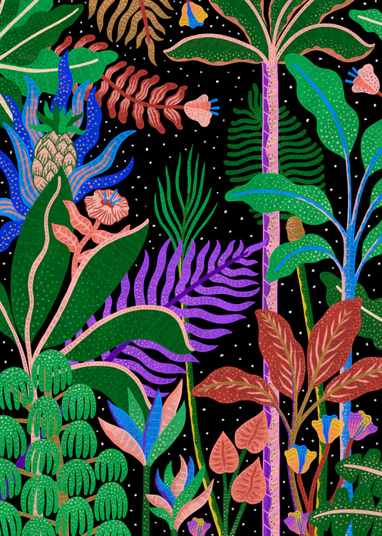 Cool Colorful Poster Of Jungle By Night Wallbaby
